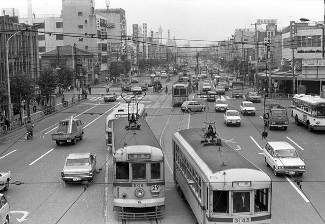 昭和の初期から庶民の足として、戦時中は軍需工場へ移動する工場労働者の足として、急速に発達したがやがて台頭してきた戦後の復興~高度成長期には路上をノロノロと12,3kmで通行する路面電車は邪魔者にされ、地下鉄路線網の整備進捗とともにやがて姿を消していく。