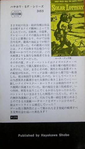 刺客と身を守るクイズ・マスターの戦いは興味深かった。テレパシストというアイディアも効いていて、さすがディックと思わせる多面的な面白さを作り出していた。